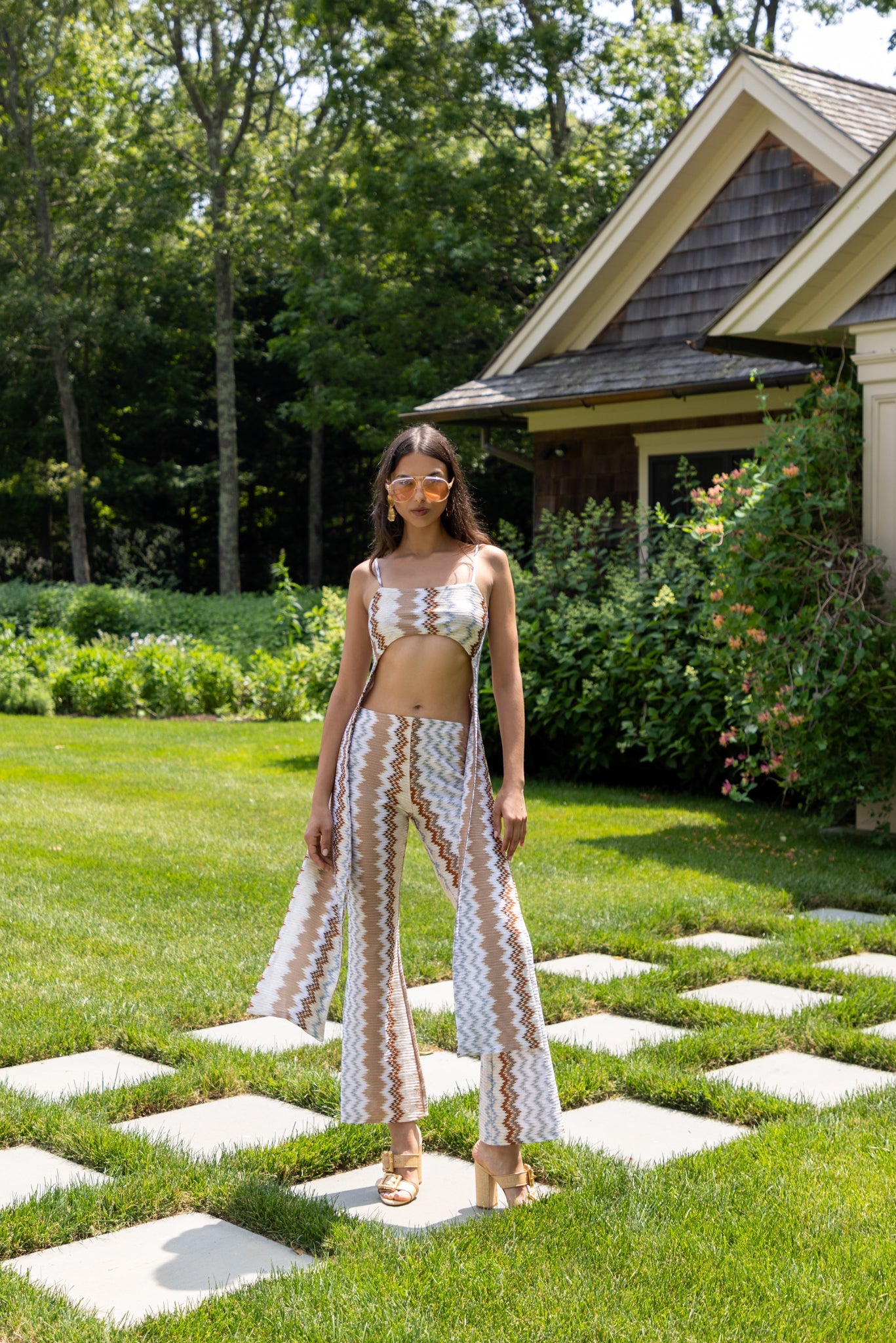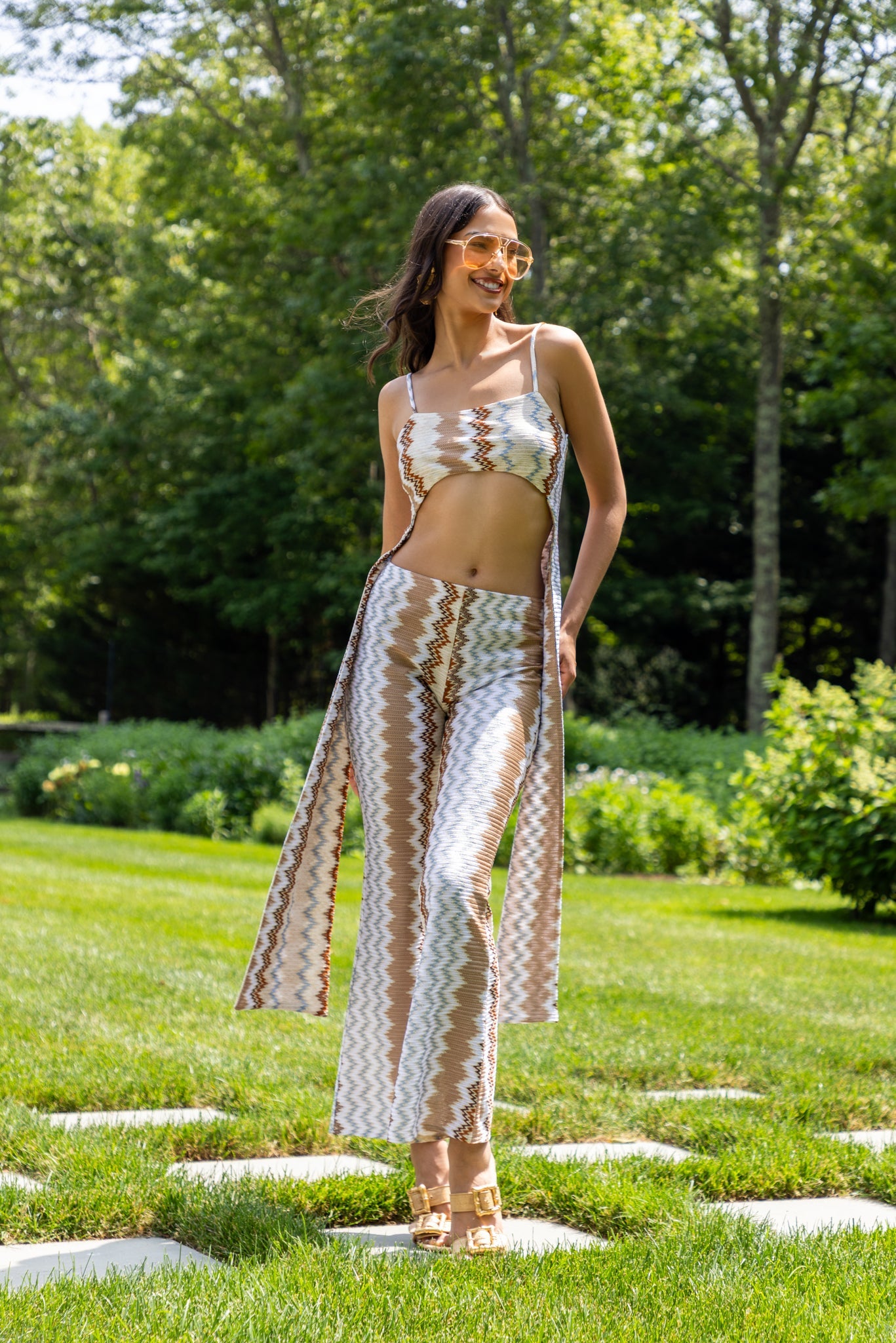 A standout piece designed to move with ease and confidence. Crafted from a signature zigzag-patterned fabric, this flared pant combines comfort with effortless sophistication. The waistband ensures a relaxed fit, while its fluid drape makes it perfect for both daytime styling and evening moments.